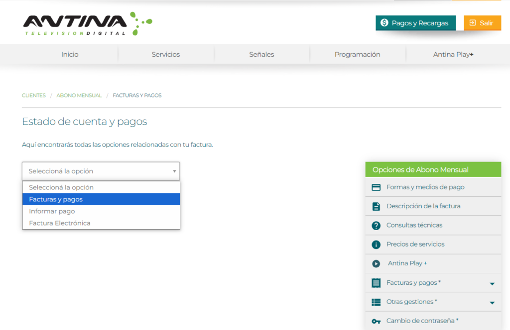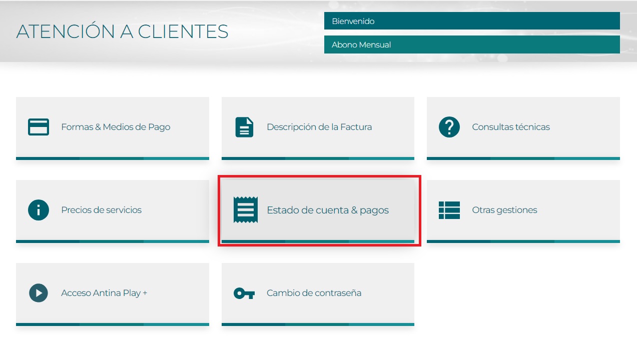 En el panel inicial de tu cuenta Antina (al que podés acceder desde acá) elegí la opción Estado de cuenta & pagos.