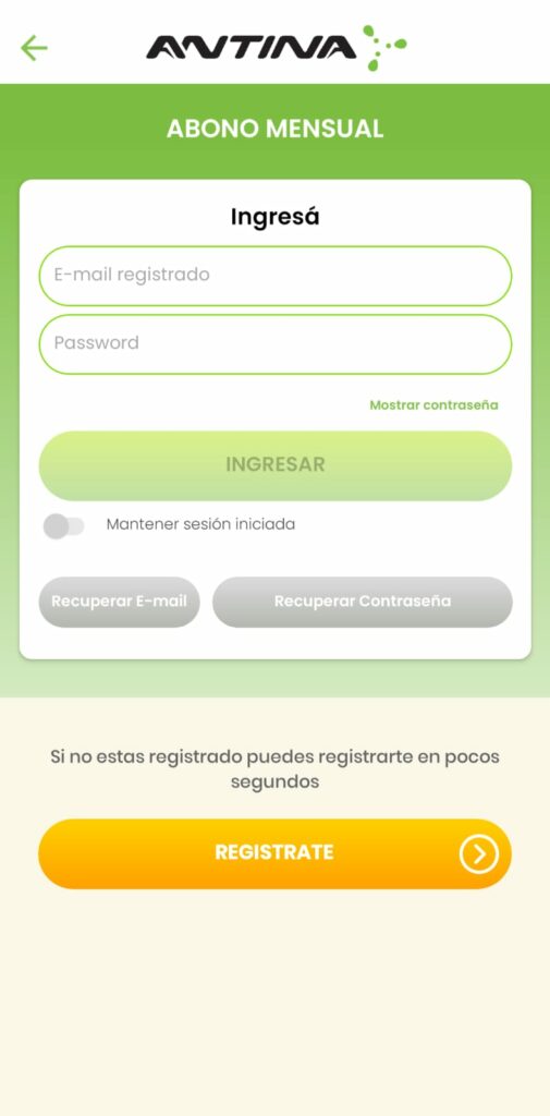Ingresá el mail y la contraseña con los que te registraste en la Web de Antina.