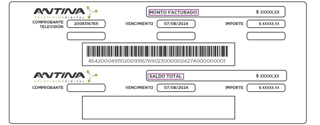 El servicio de Antina se cobra por adelantado. Por eso, en la primera factura o en la adquisición de nuevos servicios (packs, decos, cambios de plan), vas a ver incluidos saldos proporcionales y, si los hubiere, cargos de instalación.