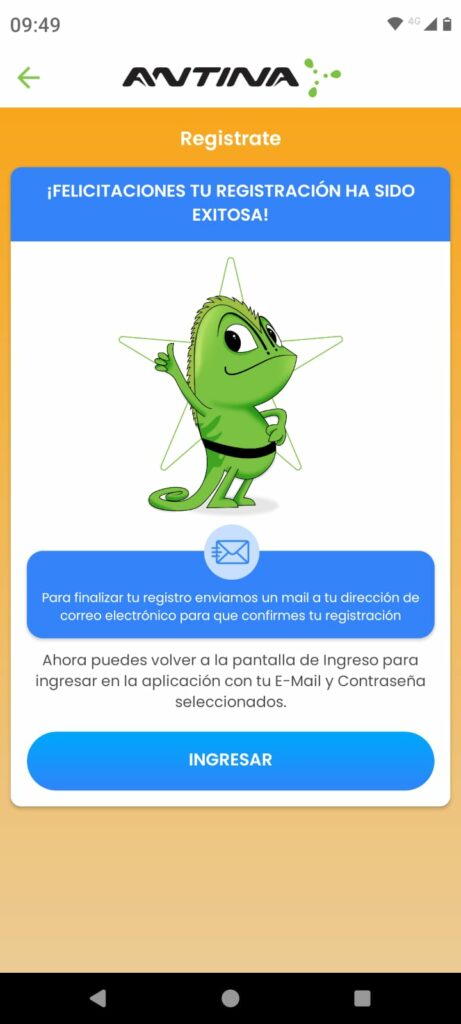 Después de confirmar la registración, podrás loguearte desde la pantalla principal de la App: