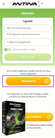 Accioná el botón REGISTRATE