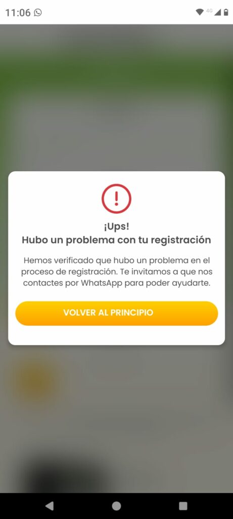 Recordá que solo se puede utilizar un E-mail por número de cliente. Si al intentar avanzar ves la siguiente pantalla: