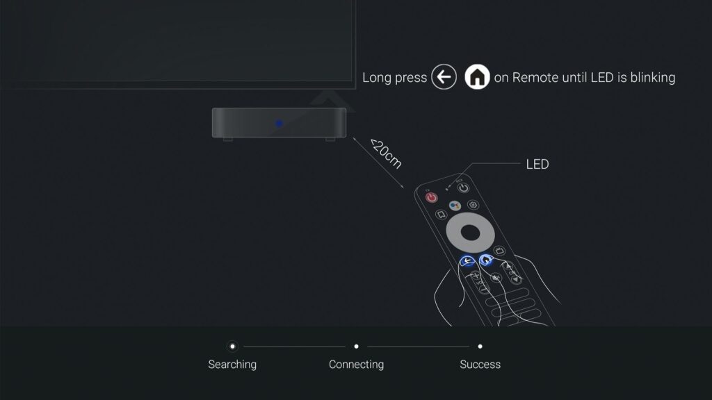 Después de la pantalla de bienvenida verás la siguiente pantalla para configurar el control remoto del TV Box para que encienda y apague tu TV:
