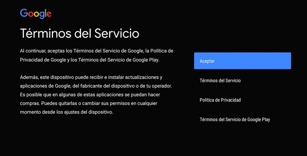 Luego, vendrán cinco, pantallas de configuración que deberás completar según tu preferencia: Servicios Google, Control por Voz, Permisos de Búsqueda, Resultados Personales y Elección de un nombre para el dispositivo.