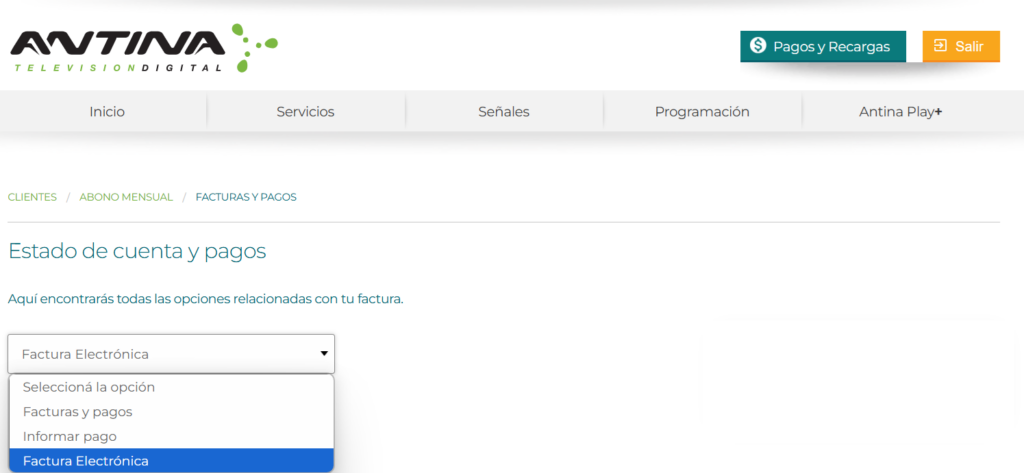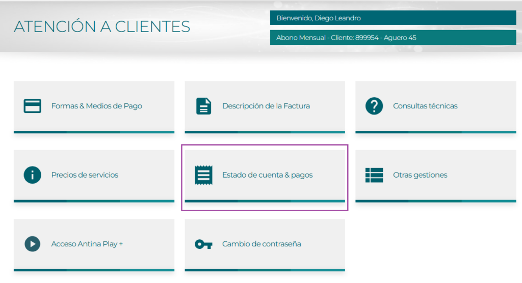 En el panel inicial de tu cuenta Antina elegí la opción Estado de cuenta & pagos.