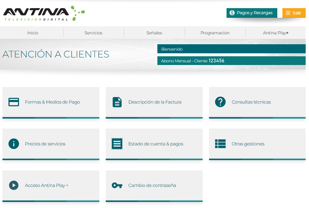 El número de cliente es el número exclusivo que identifica todos los decodificadores asociados a una misma cuenta Antina. El máximo de decodificadores que puede tener un mismo número de cliente es 5: el básico + cuatro adicionales.